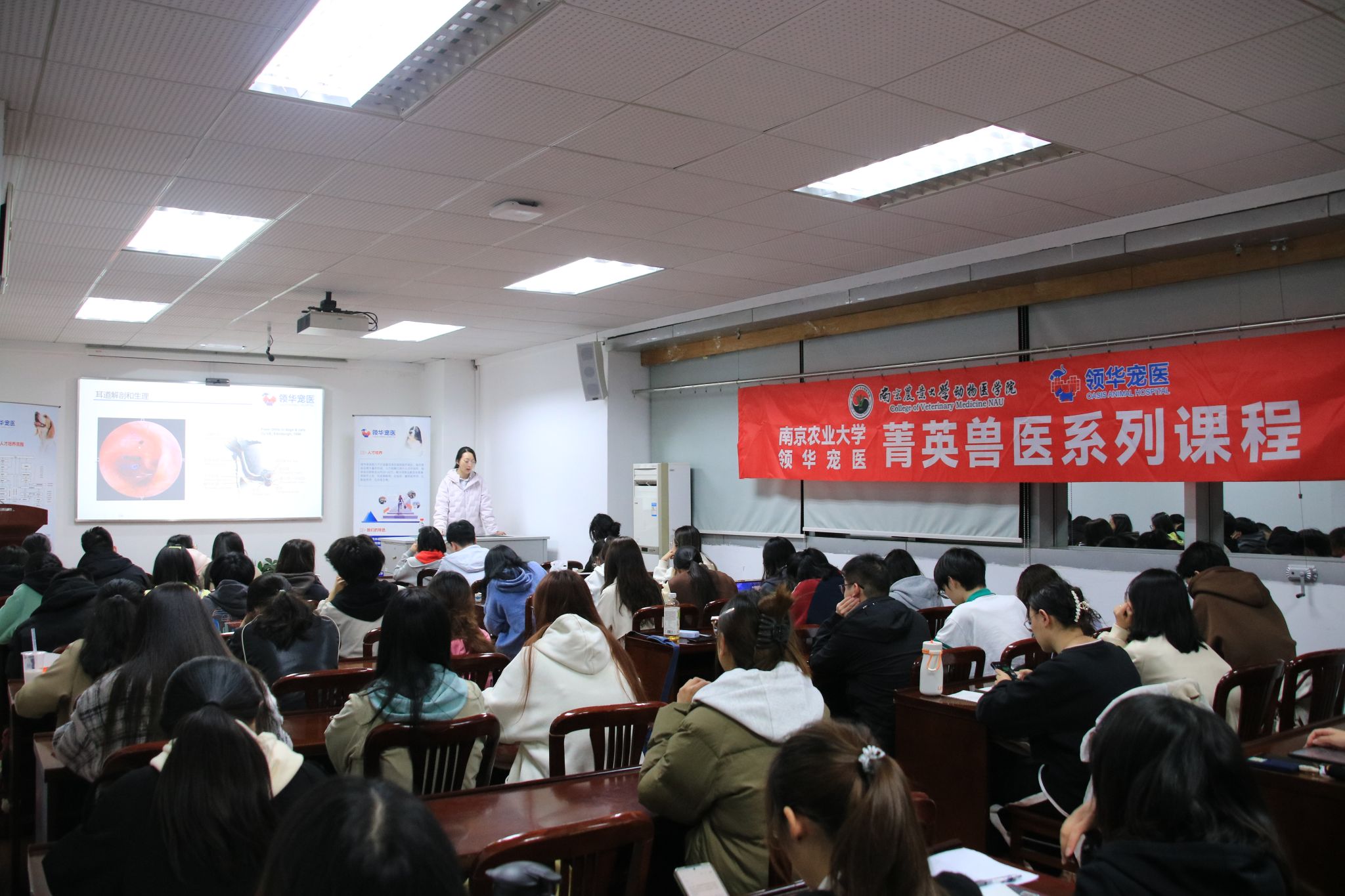 4月2日晚,菁英兽医系列课程第三期于逸夫楼3044顺利举行。本次课程特邀上海领华动物医院静安转诊中心技术院长许艺凡担任主讲嘉宾,围绕“犬猫耳炎的管理”这一主题,为在场学员带来了一场内容丰富、实用性强的专业讲座。课程伊始,许医生从耳道解剖和生理知识切入,指出犬猫耳道与人类耳道存在显著差异。犬猫耳道具有独特的弯曲结构,方向朝向鼻尖,且呈现内净外脏的特点。这一基础讲解为后续深入理解犬猫耳炎相关知识奠定了重...