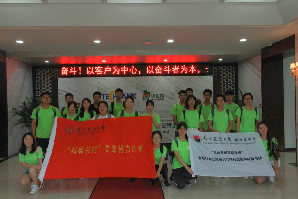 7月11日-26日,新葡的京官网团委组建的“直面非洲猪瘟”畜牧行业发展现状与应对措施科技调研服务团,在辅导员李欣欣、安琪两位老师的带领下,来到江苏南京农大动物药业有限公司、河南南阳牧原集团,及江苏马鞍山汉世伟食品集团有限公司参观学习。