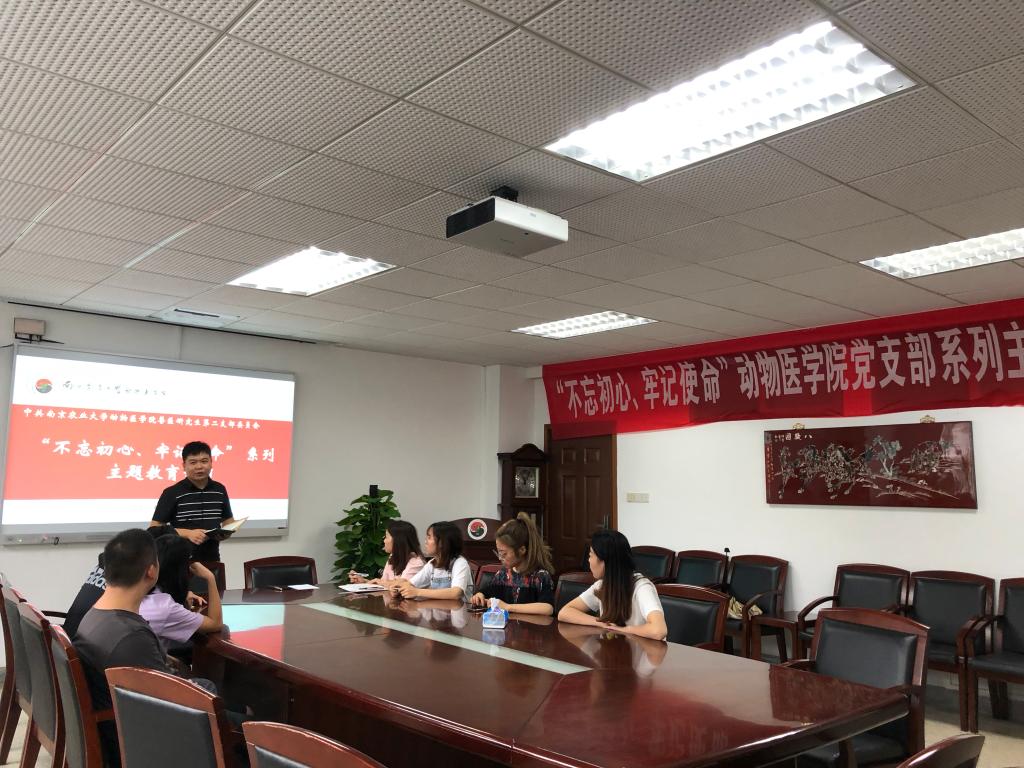 9月26日上午11:00,中共新葡的京集团8814兽医研究生第二支部委员会,在逸夫楼3036召开“不忘初心、牢记使命” 系列主题教育学习会。研究生专硕第二党支部全体党员到场参加。
