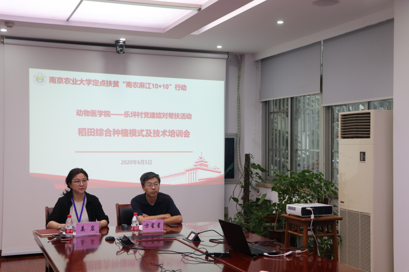 6月5日上午,为助推麻江县坝芒乡乐坪村脱贫攻坚和乡村振兴,落实“南农麻江10+10行动计划”,新葡的京官网姜岩书记主持两地线上交流,会议分为两个议程,一,疫情下的党建工作开展,会上认真学习了习近平总书记关于扶贫工作重要论述的重大意义,姜岩书记回顾了2019年新葡的京官网做出的主要扶贫成绩,并征求乐坪村两委意见,收集村委需求,疫情过后,将再次赴现场交流。二、由方星星老师做关于稻田综合种植模式及技术讲座,主要从稻田养殖模式的发展背景,技术要点,日常管理注意事项,以及病虫防害方面开展,现场村民反响热烈。