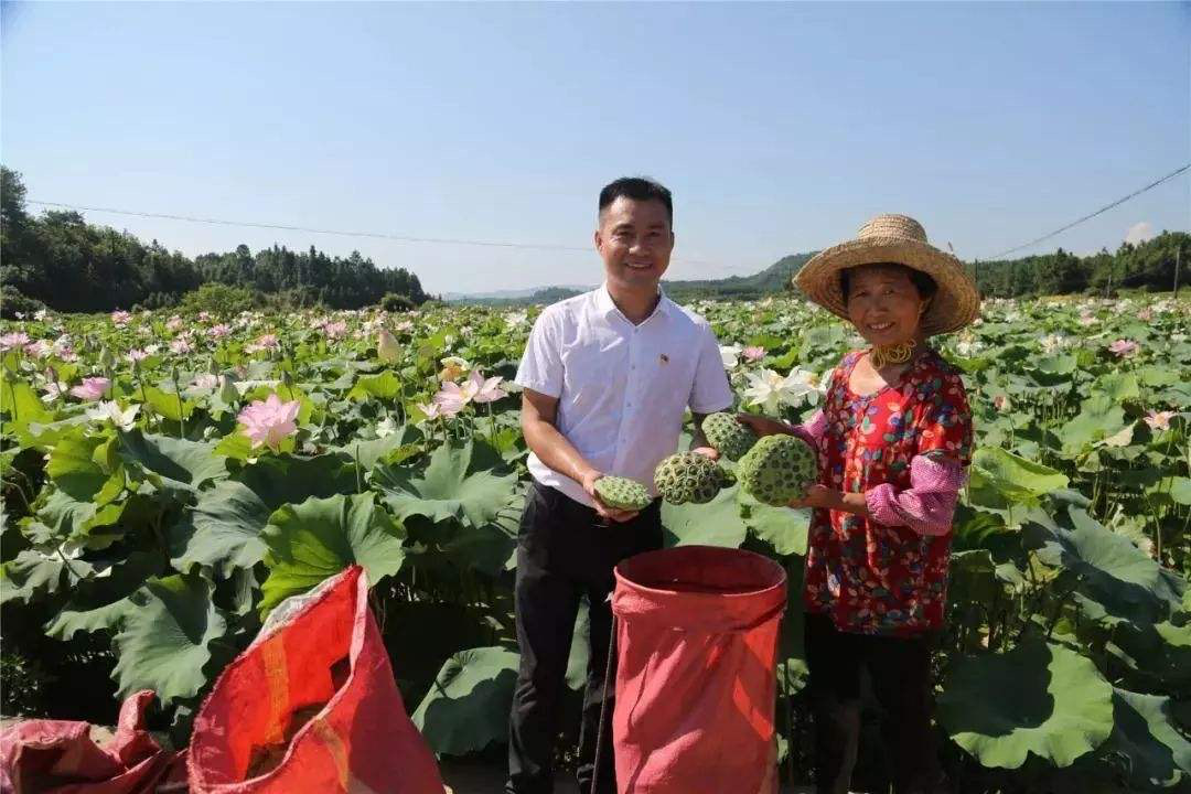 在采访过程中小组成员了解到谙源村以“崇仁麻鸡”品牌为抓手,多措并举,产业脱贫效果显著。现有“一麻一黑一白一绿”四个扶贫特色产业。 “一麻”是指崇仁麻鸡特色产业,“一黑”是指黑木耳产业,“一白”是指白莲产业,“一绿”是指蔬菜产业。村集体经济不断发展壮大,2019年村级集体经济收入达12.5万元,2020年村级集体经济收入预计突破20万元。