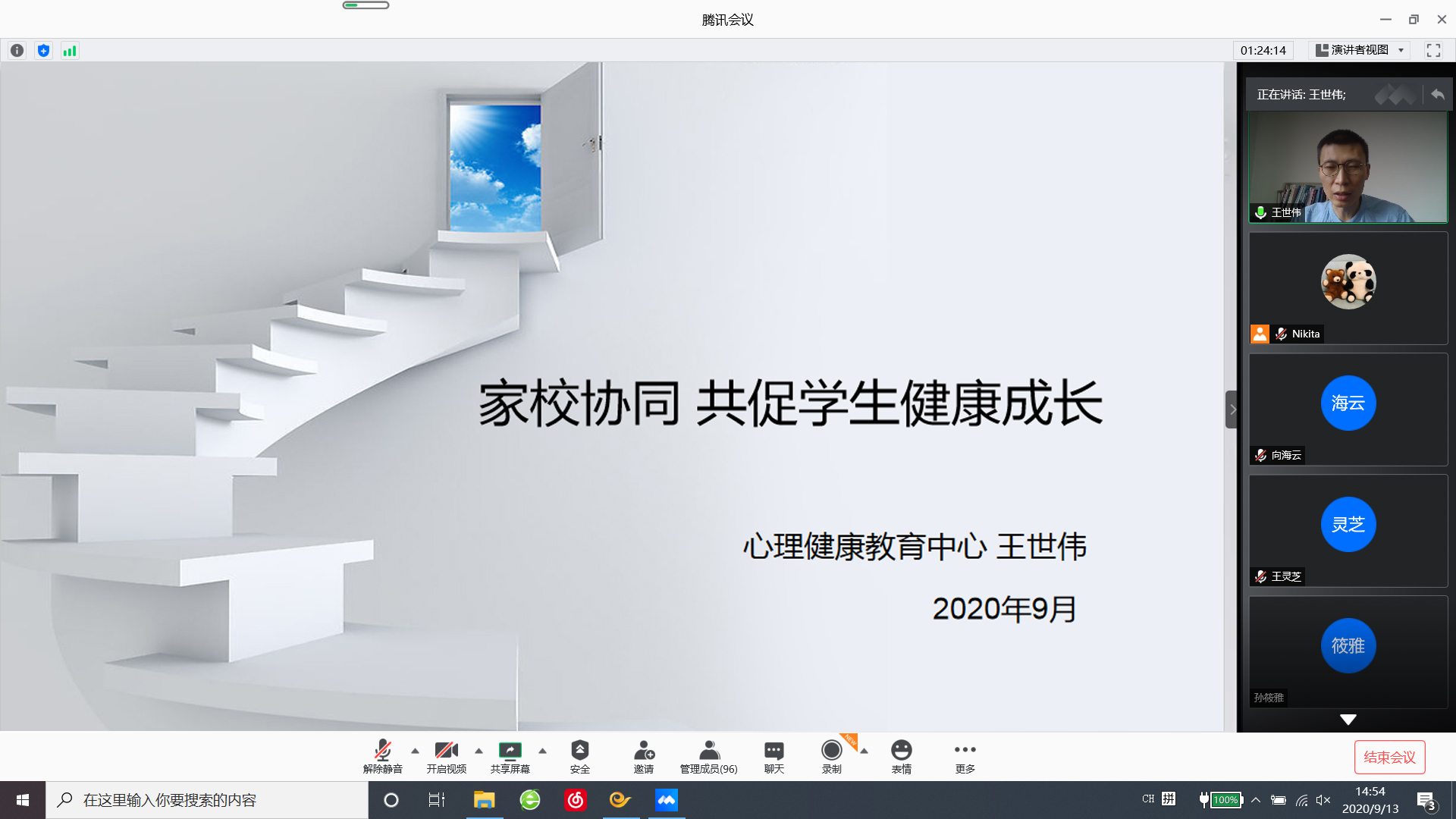 此外,学院特别邀请了校心理健康中心王世伟老师为各位家长作题为《家校协同 共促学生健康成长》的分享,从专业的角度详细为大家讲解了如何与孩子相处,如何与学校打造合力,共助学生成长。