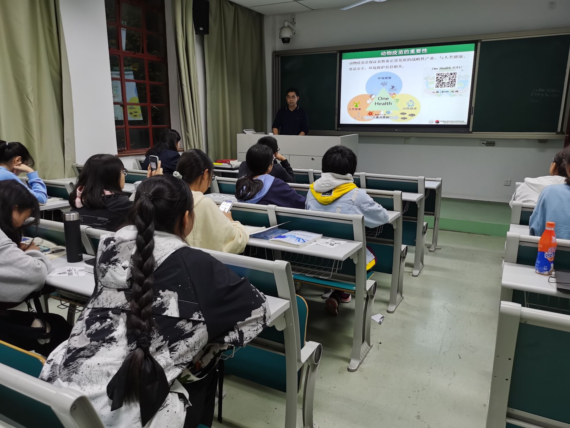 10月26日晚,蔺辉星老师作为主讲人在主楼225举行的新生研讨课获得了圆满成功。该节新生研讨课的主题是“动物疫苗的开发”。蔺老师首先给同学们介绍了动物疫苗的重要性,并由此提出了“One Health”的概念,然后进一步讲述了疫苗的起源、动物疫苗的种类、动物疫苗的研发情况以及其发展趋势,让人受益匪浅,让同学们对动物疫苗的起源、制作过程等多方面有了较为系统的了解。蔺老师的细心讲解,引起了同学们的热烈反响,得到了同学们的一致好评。
