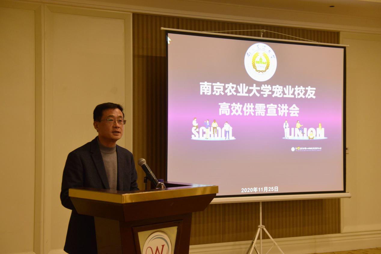 新葡的京集团8814院长姜平致辞。姜平介绍动医院临床兽医学的蓬勃发展,学院更加重视临床兽医的培养教育,先后购置了CT、核磁共振等大型教学仪器,引进两位DVM博士助力临床教学工作。姜平真切希望加大学院与校友企业的合作力度,共同努力促进学院发展,打造宠物行业的“南农大”品牌。