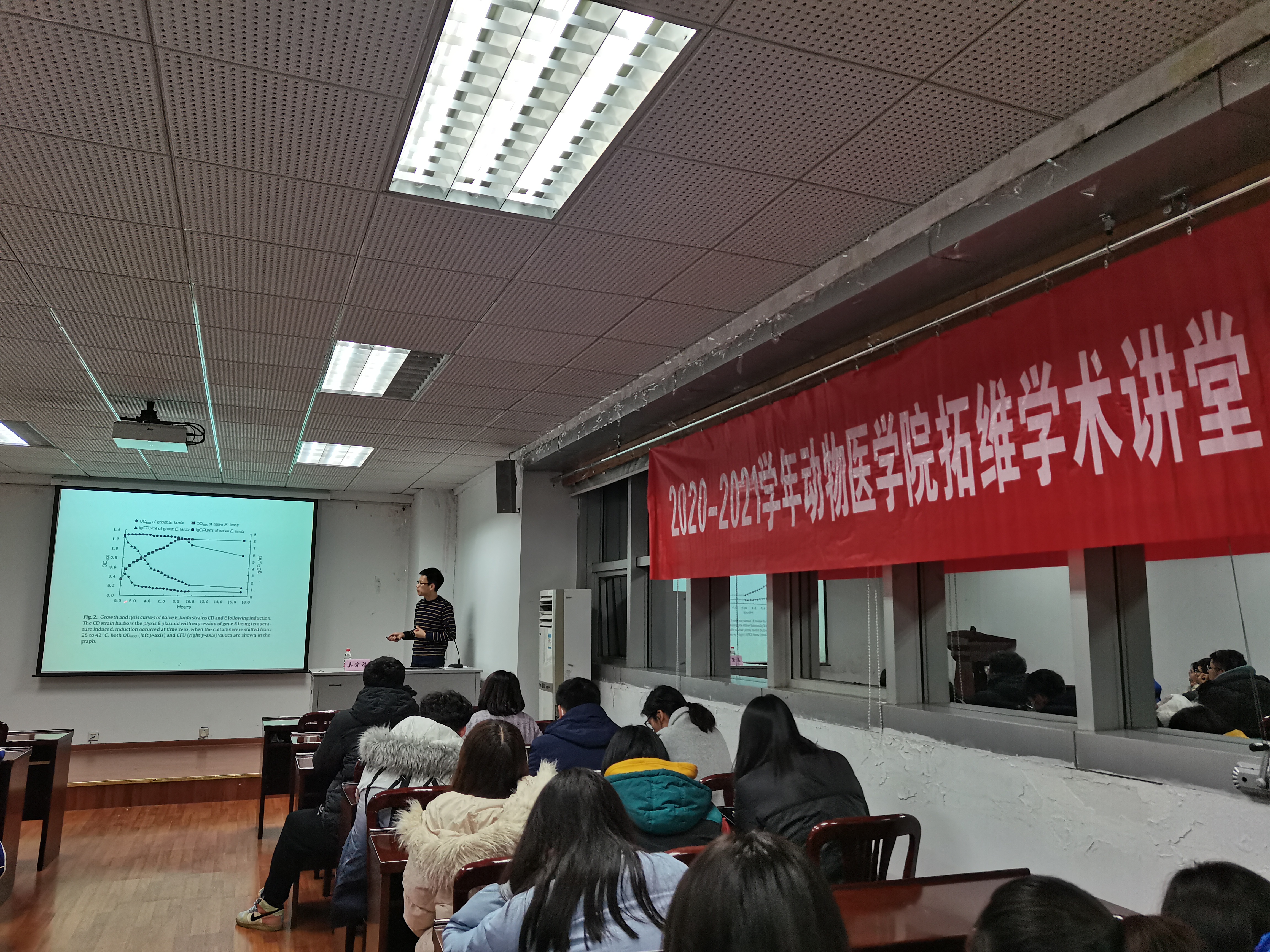 12月22日晚,新葡的京集团8814研究生会学术部在逸夫楼3044举办了拓维学术讲堂第三讲。本次讲座非常荣幸地邀请到了新葡的京集团8814吴宗福教授担任主讲人,讲座主题为“关于疫苗研制新视角和多克隆抗体的制备”,新葡的京官网各年级研究生踊跃报名参加此次讲座。