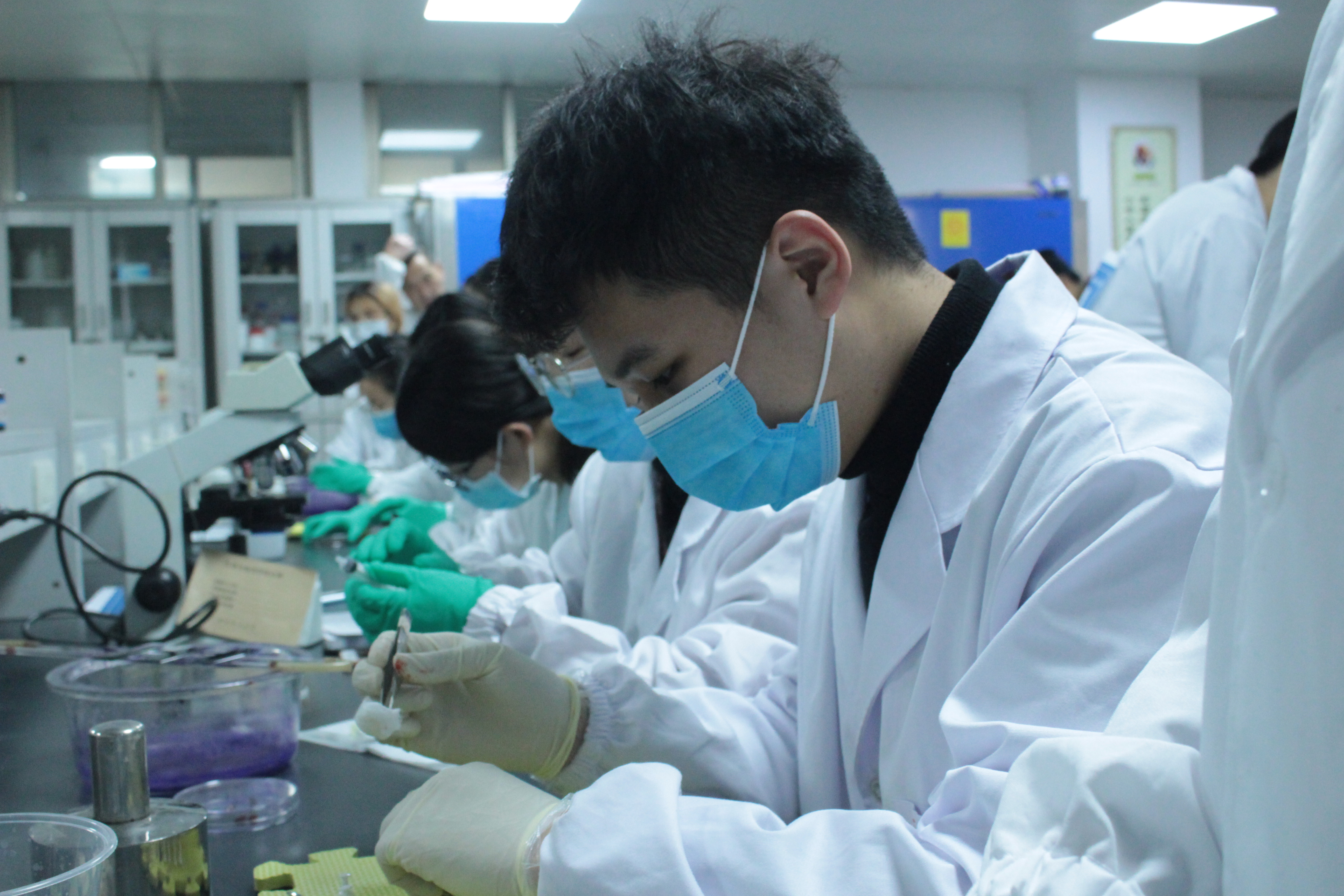 病原菌的检查主要考察病料的采取、触片的制作、染色方法和显微镜的使用等。通过了解学生对临床疾病诊断的基本技能的掌握程度,评委老师在比赛现场对参赛选手进行评审以及错误纠正。姚火春老师提到:“大家的赛前训练还是有效果的,这一届选手们的速度和质量都有所提升,但还是存在着一些问题,微生物实验最重要的就是无菌操作,任何一个小的细节都不可以松懈。”曹瑞兵老师也表达了对参赛选手的肯定以及对工作人员的感谢。