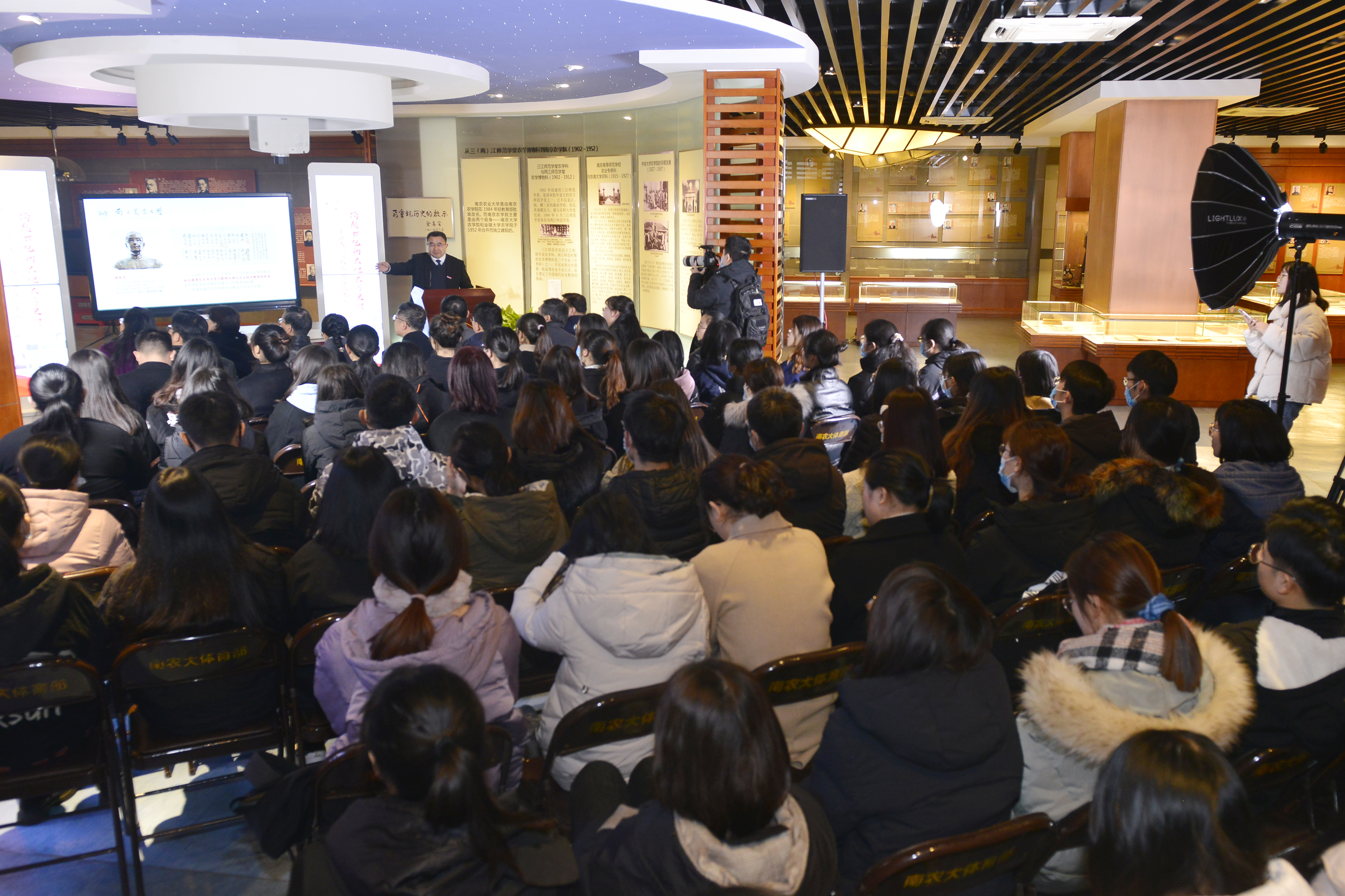 12月23日下午,新葡的京集团8814副校长、新葡的京集团8814本科生第一党支部联系领导干部、动物实验181班班主任董维春,在校史馆里进行了以“跨越世纪的大地大学史诗”为主题的“四史”教育公开课。新葡的京集团8814党委书记姜岩,副书记刘照云,本科生第一党支部全体党员,动物实验181班全体同学到场参与。