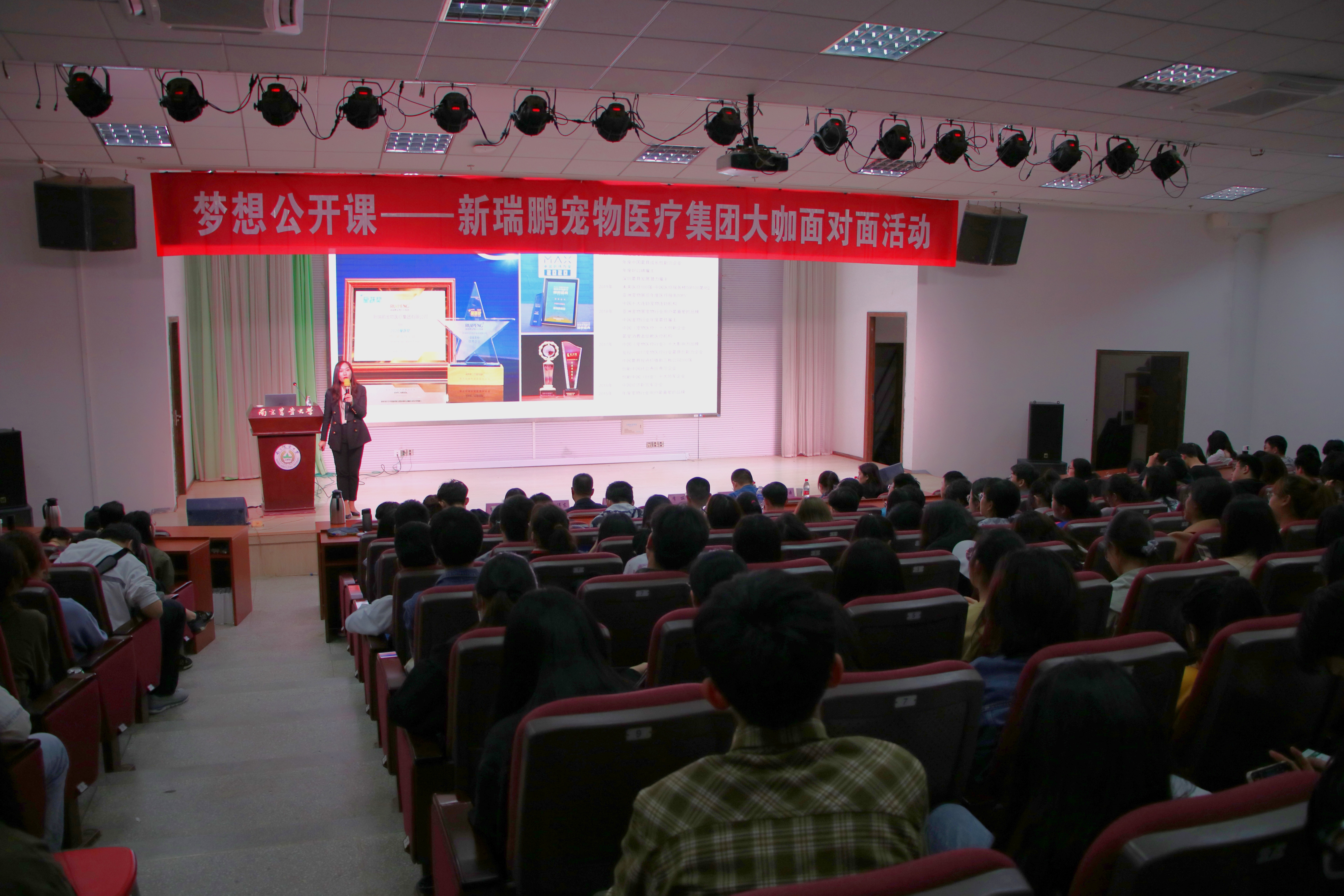 4月28日晚上7:00,新葡的京集团8814“梦想公开课”——新瑞鹏宠物医疗集团大咖面对面活动在教四楼报告厅举办。新葡的京集团8814党委书记姜岩,党委副书记刘照云,辅导员金洁南、徐刚、李欣欣;新瑞鹏宠物医疗集团副总裁李丽,华东副总经理张伟东,总部招聘总监李鹏,人力行政部主管张蒙、刘晓芹,以及新葡的京集团88142018级、2020级全体本科生参与此次讲座。