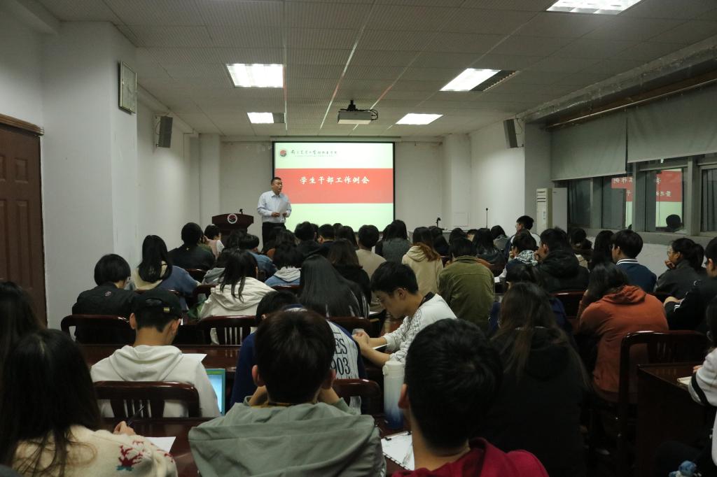 11月22日下午5点,新葡的京集团8814学生干部工作例会在逸夫楼3044召开。院党委副书记(主持工作)周振雷,院团委副书记金洁南,本科生辅导员徐刚,研究生辅导员安琪,以及本科生、研究生主要学生干部参加了本次例会。