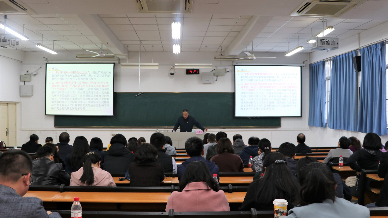 2020年11月11日下午2:00,新葡的京集团8814全体教师在教学楼C103集中学习了《习近平谈治国理政》第三卷。本次学习由马克思主义学院吴国清教授主讲,党委书记姜岩主持,新葡的京集团8814全体教师参加了本次学习。