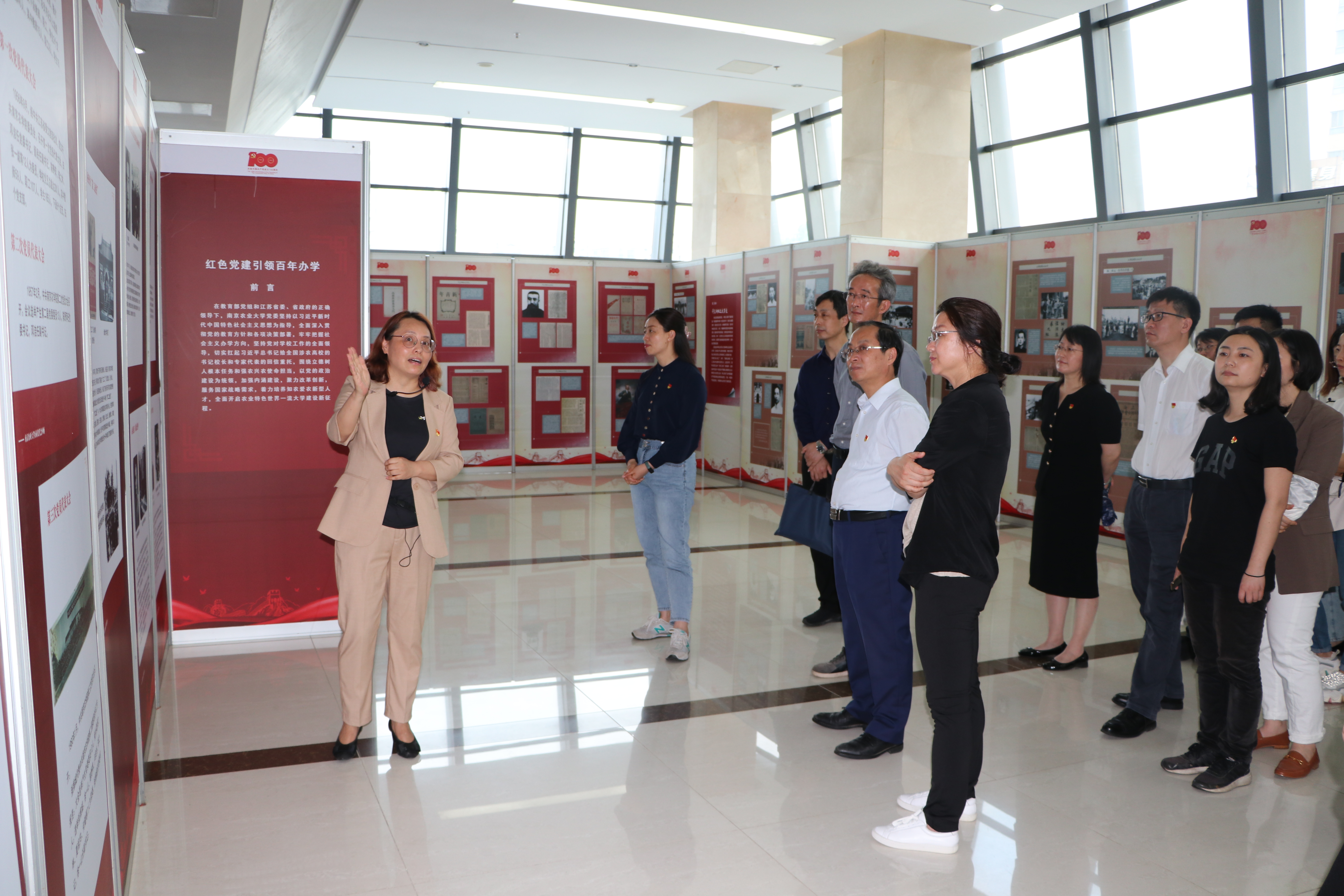 5月14日,学院全体领导班子成员和行政管理人员在卫岗校区体育馆南侧二楼展厅参观了以“伟大开端”为主题的中国共产党创建历史图片展。在讲解员的细致讲解下,与会人员通过数百张珍贵的图片史料,全面学习了中国共产党走过的峥嵘岁月和奋斗历程,深入感受党的初心使命。